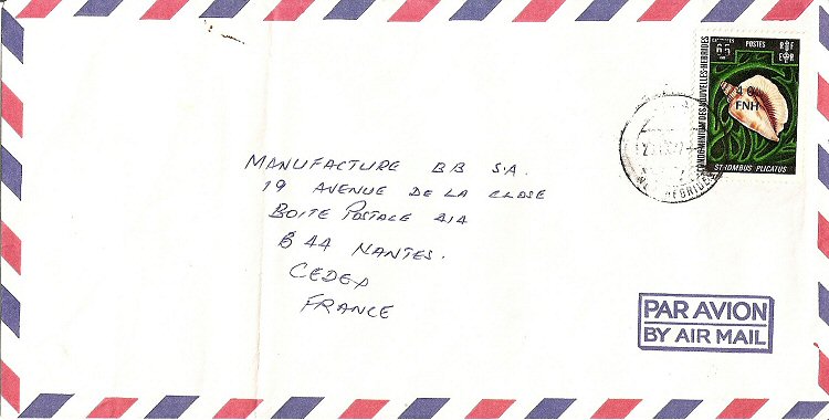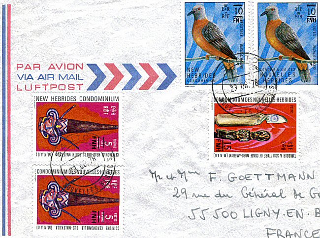 Air mail to our late friend Jacques Merot's daughter in Paris. The 1976 provisionals cancelled with PM31C Port Vila.