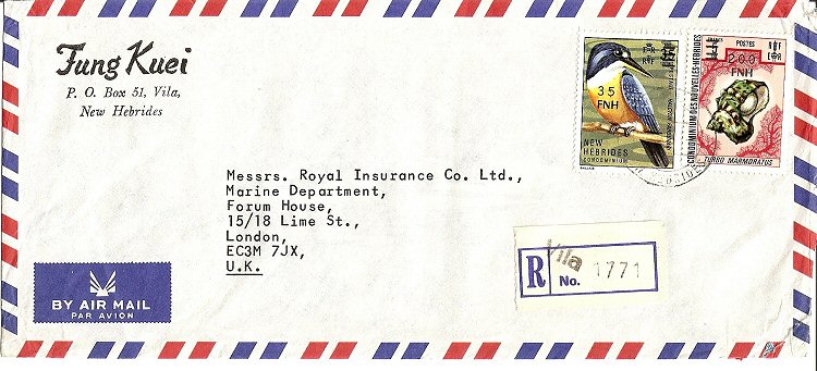 A.R handstamp in black, the registration label is type NR20E with PORT-VILA added by a big blue