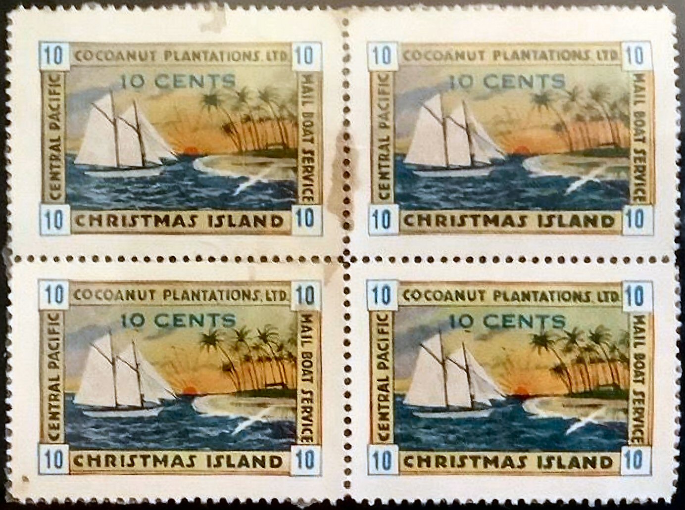 4. issue left block of four, dot below PLANTATIONS at left bottom stamp.