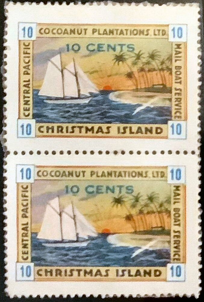 The stamp shows the company schooner "Ysabel May" (of 135 tons) which is greeted by a Bosun Bird while approaching Christmas Island.